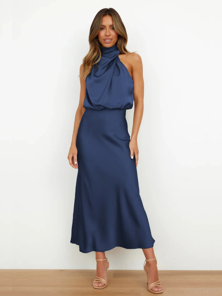 Robe Bleu Marine en Satin