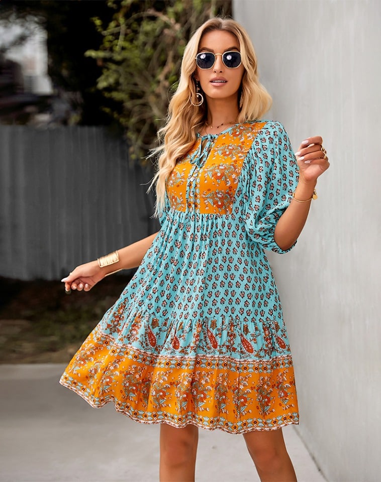 La robe bohème champêtre est une robe légère et fluide avec un style romantique et champêtre. Elle est idéale pour les mariages en plein air ou les occasions spéciales. Elle est souvent ornée de dentelle, de motifs floraux et de volants.