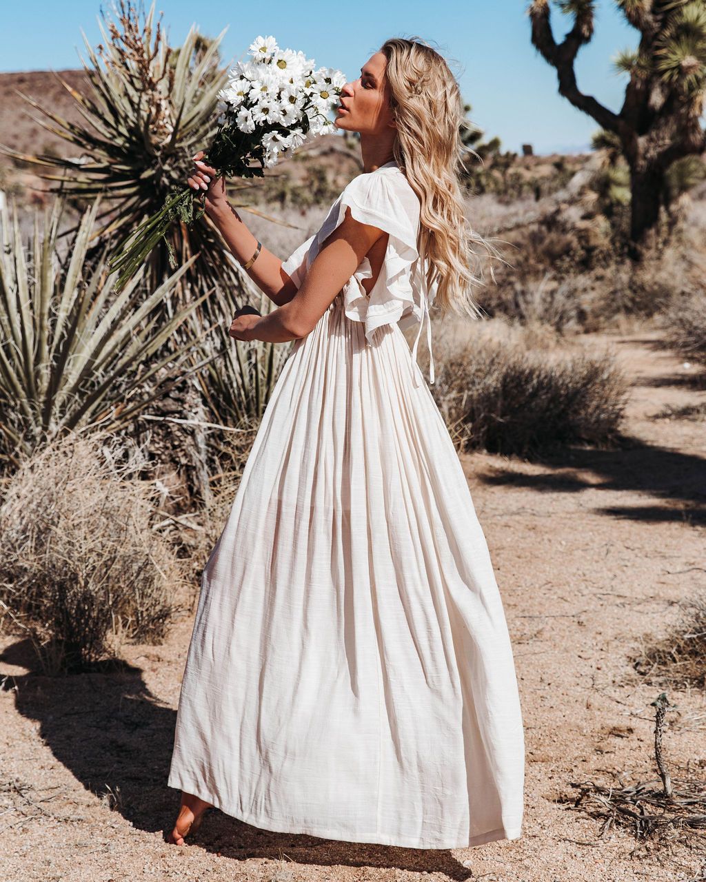 Robe Bohème Longue de Plage Beige en Taille Haute