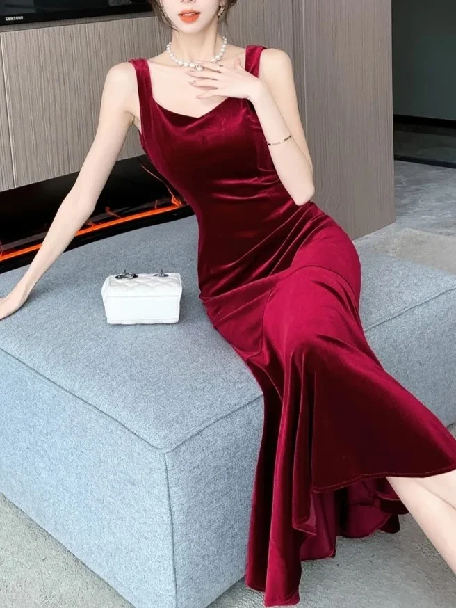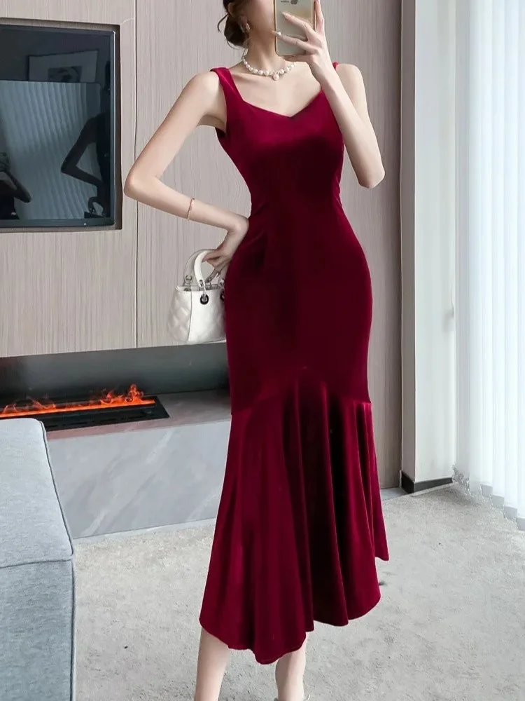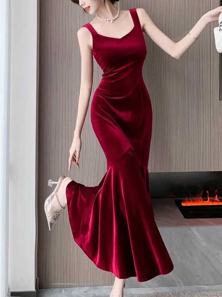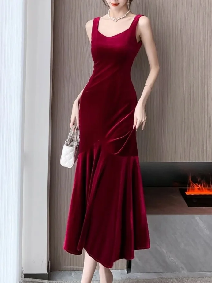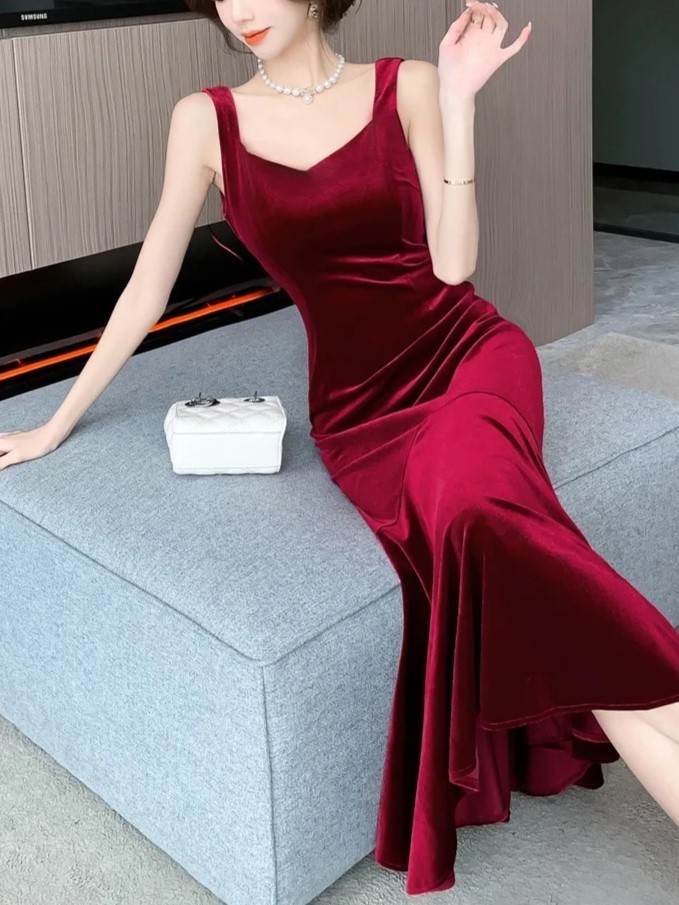 Envie de marquer les esprits lors de votre prochaine soirée ? Cette robe bordeaux longue en velours est faite pour vous ! Avec sa couleur profonde, elle est vraiment chic, et sa coupe fluide vous mettra en valeur à coup sûr !
