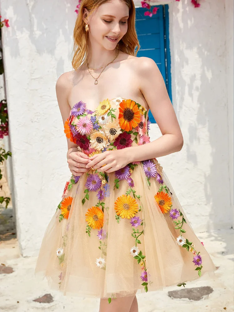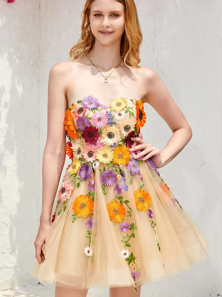 Vous cherchez une robe qui capture l’essence de la joie et de la liberté ? Optez pour notre robe bustier champagne à fleurs champêtres, une pièce d’exception qui vous confère une allure féminine et chic, à chaque fois que vous la porterez !