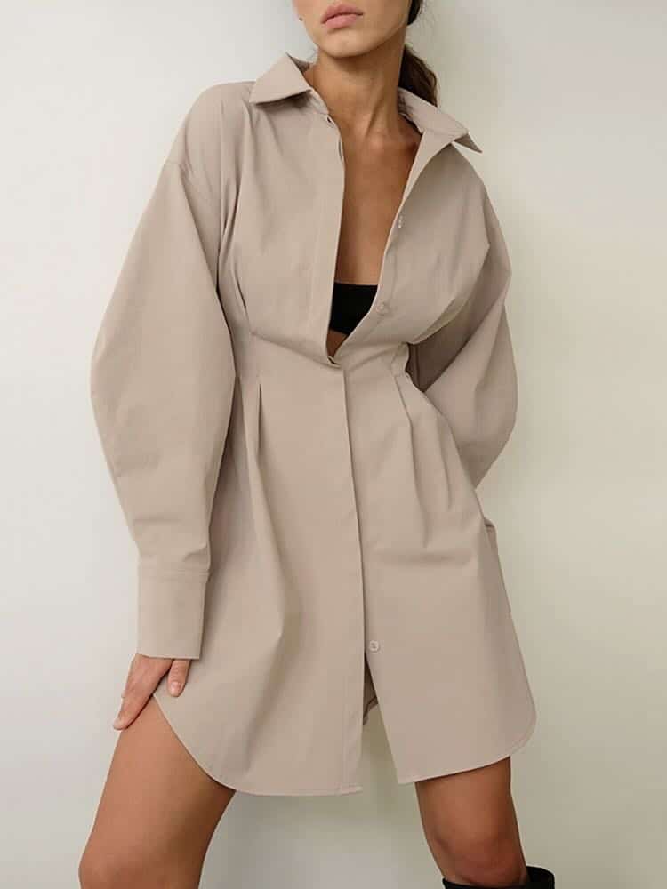 Robe Chemise Cintrée et Plissée