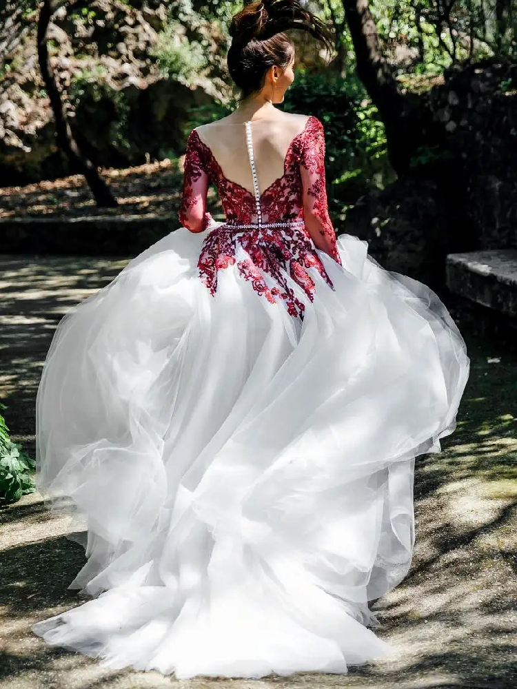 Votre grand jour approche ? Vous recherchez la robe de vos rêves ? Optez pour notre robe de mariée blanche et bordeaux, une petite merveille conçue pour vous sublimer et vous rendre absolument magnifique !