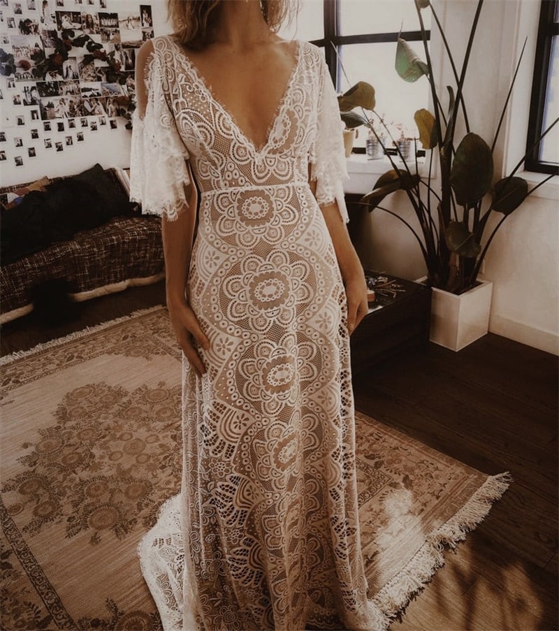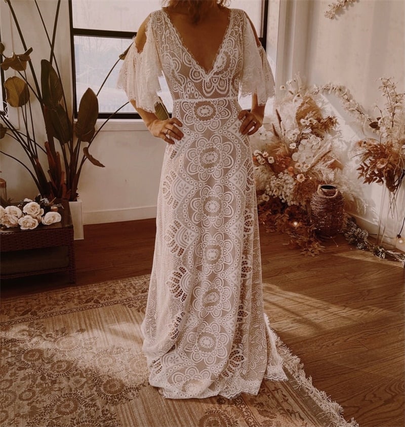 Notre robe de mariée bohème champêtre est conçue pour les mariées qui cherchent un look décontracté et naturel pour leur grand jour. Elle est confectionnée avec des matériaux nobles et élégants, comme de la dentelle et de la mousseline, pour un résultat à la fois romantique et élégant. Elle mettra en valeur votre silhouette tout en étant confortable à porter.