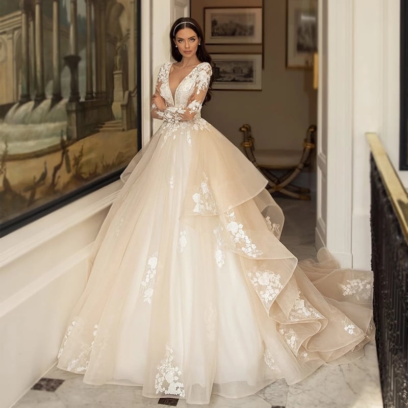 La robe de mariée champagne est la touche parfaite pour ajouter une touche élégante et sophistiquée à votre tenue de mariage. Avec sa couleur champagne, cette robe est idéale pour les mariages de jour comme de nuit. Elle convient à tous les styles de mariage, que vous cherchiez un look romantique ou plus moderne