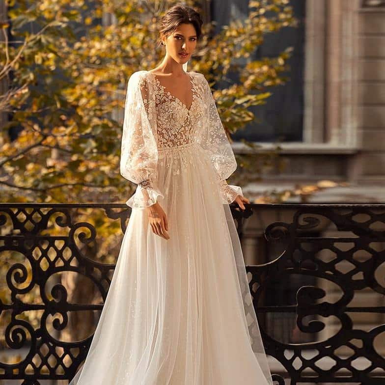 Vous êtes à la recherche d’une robe de mariée unique qui reflète votre signature ? Optez pour cette ravissante robe de mariage champêtre romantique en dentelle à fleurs à manches longues. Elle vous fera sentir charmante et ravissante le jour de votre mariage. Cette robe est conçue exclusivement pour vous, confectionnée dans un tissu riche et voluptueux aux couleurs romantiques avec des motifs de fleurs en relief qui ne cesseront jamais de vous émerveiller. Elle est douce au toucher avec des bords en dentelle qui mettent encore plus en valeur sa silhouette romantique et se diffuse parfaitement autour du corps. Les manches longues ont été artistiquement conçus pour offrir une allure magistrale et gracieuse tandis que les emmanchures sont ornées de boutons délicats qui font ressortir les belles nuances du tissu cousu main avec soin, créant une allure classique et intemporelle où l’amour règne sur tout. La sensualité délicate qu’offre cette robe ne peut être surpassée, elle s’adaptera à n’importe quel contexte spécial tout en soulignant la beauté naturelle que nul autre n’obtiendra jamais !