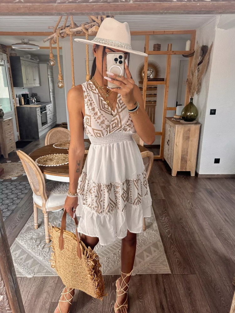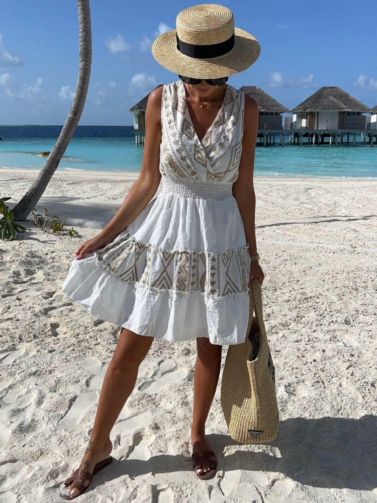 Vous cherchez une robe super jolie pour l’été ? Notre robe de plage en coton blanche est parfaite pour vous ! Sans manches, coupée à la poitrine et dos nu, elle vous accompagnera tout l’été sans faillir, un seul instant !
