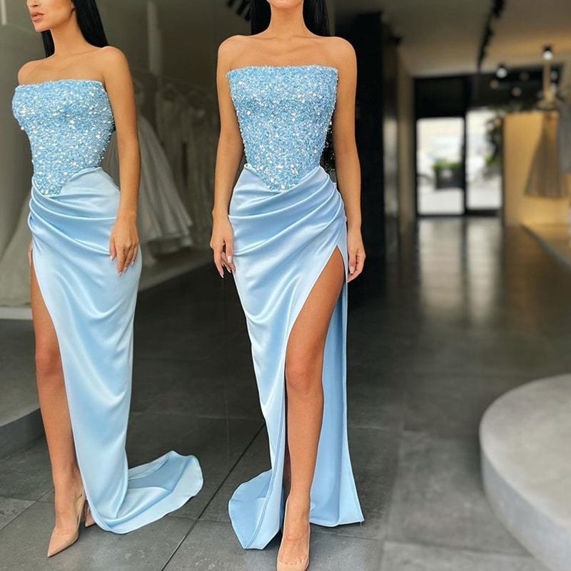 Robe de Soirée Élégante en Satin Bleu