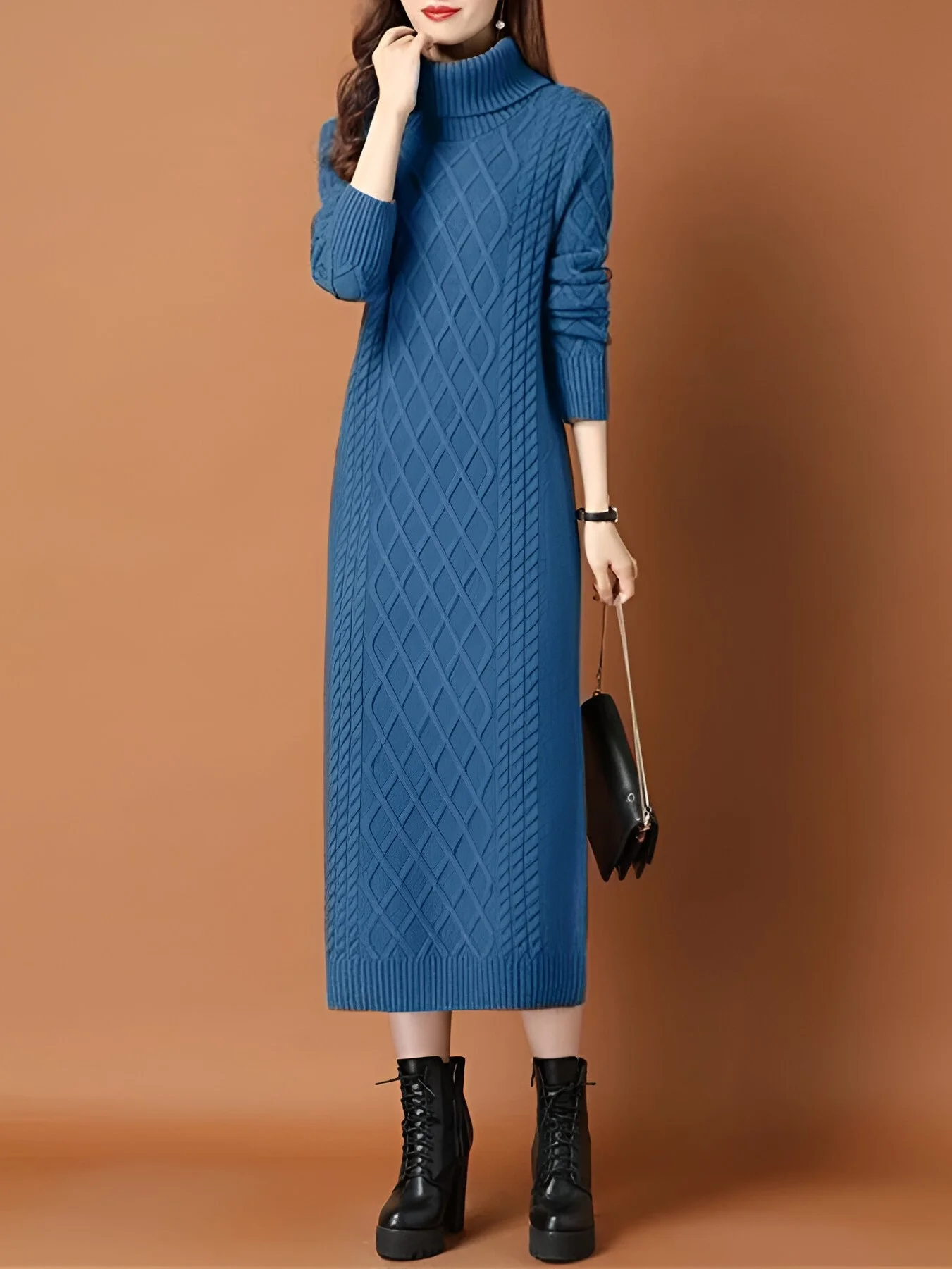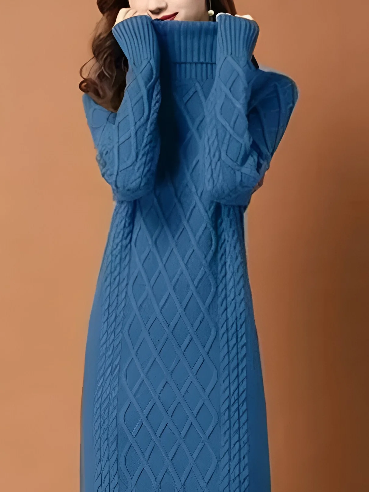 Craquez pour notre superbe robe d’hiver bleue, spécialement conçue pour vous sublimer, tout en confort. Son motif à losanges et son col roulé la rendent chic et sophistiquée, parfaite pour toutes les occasions.