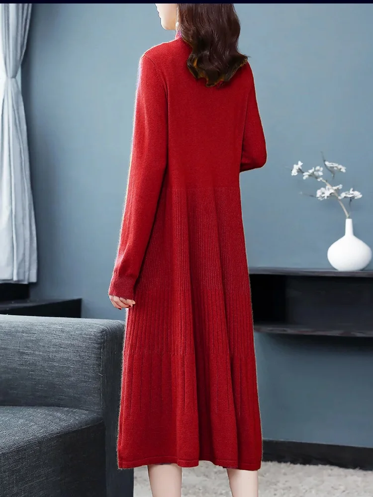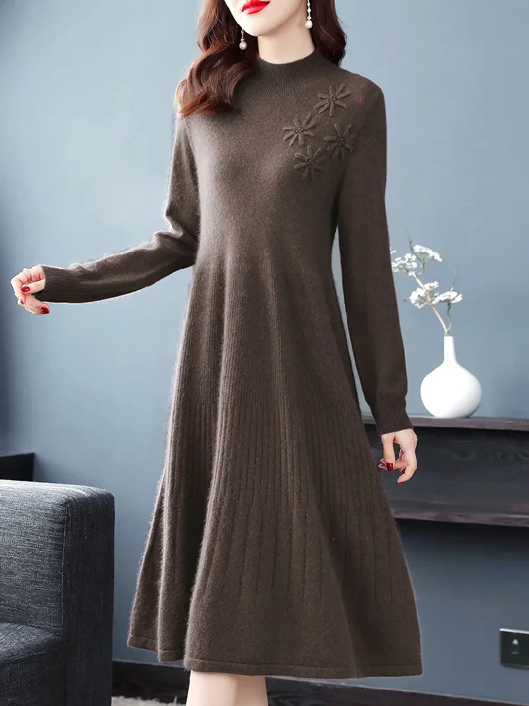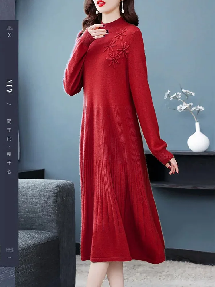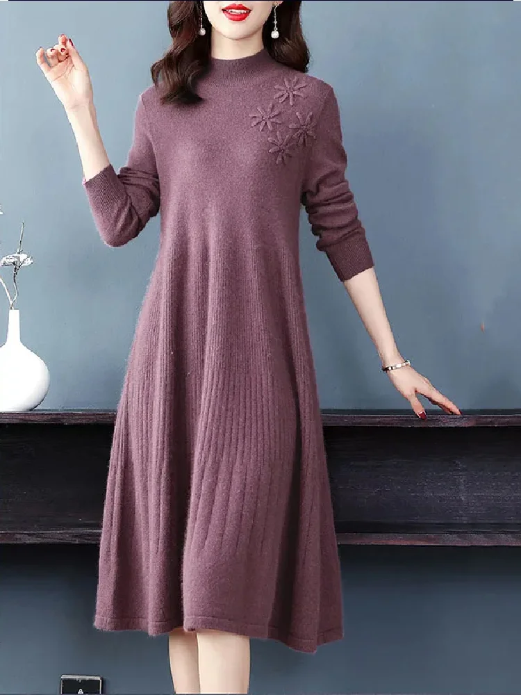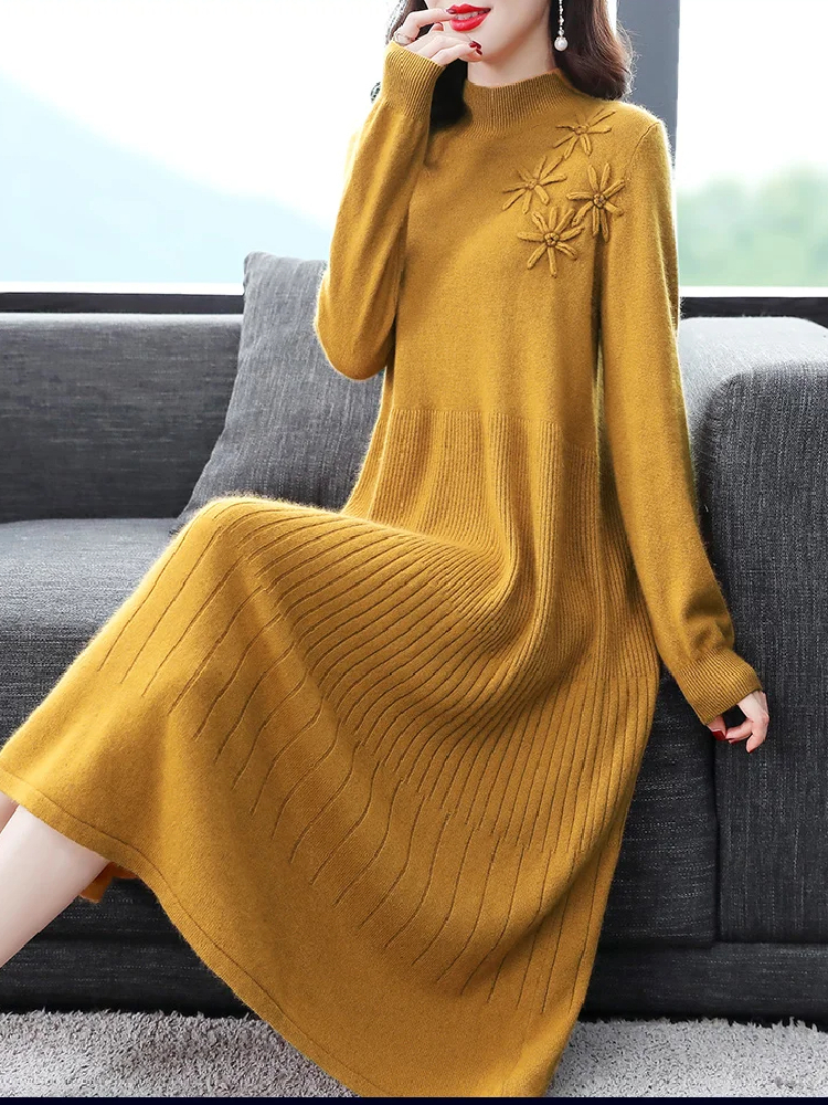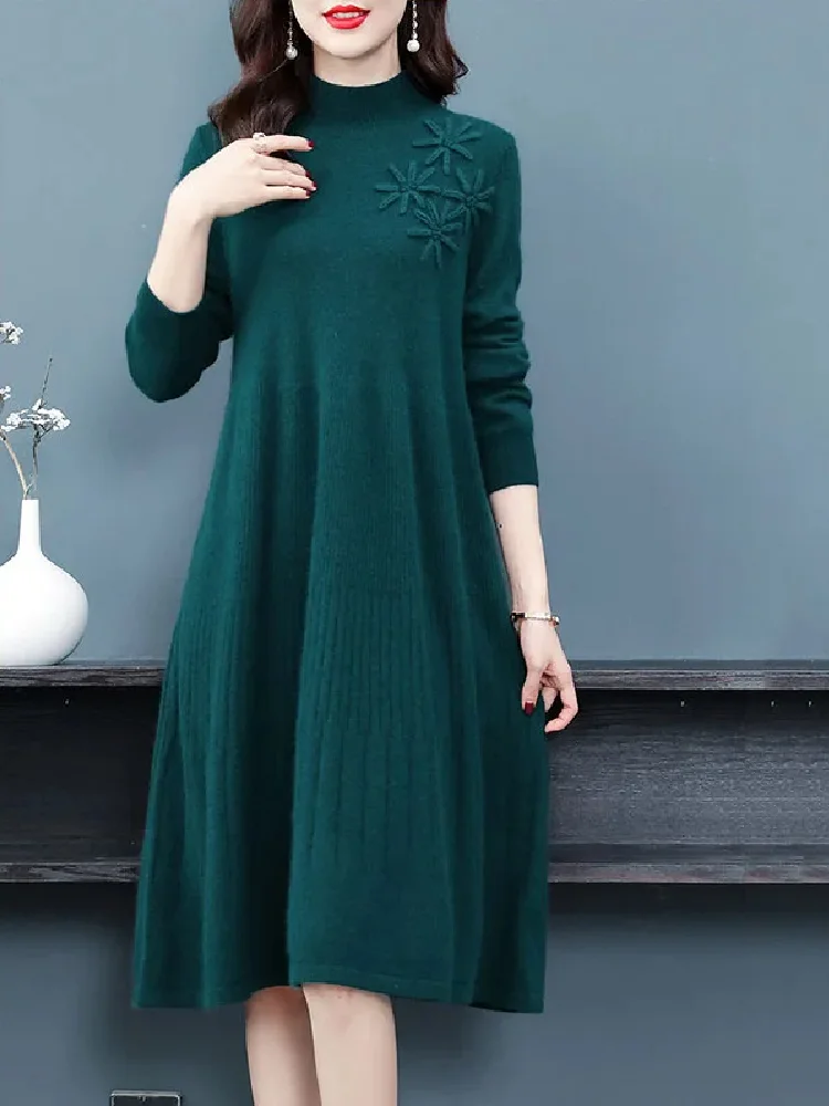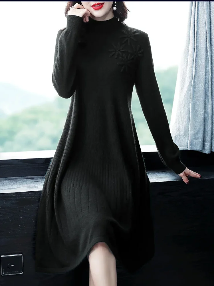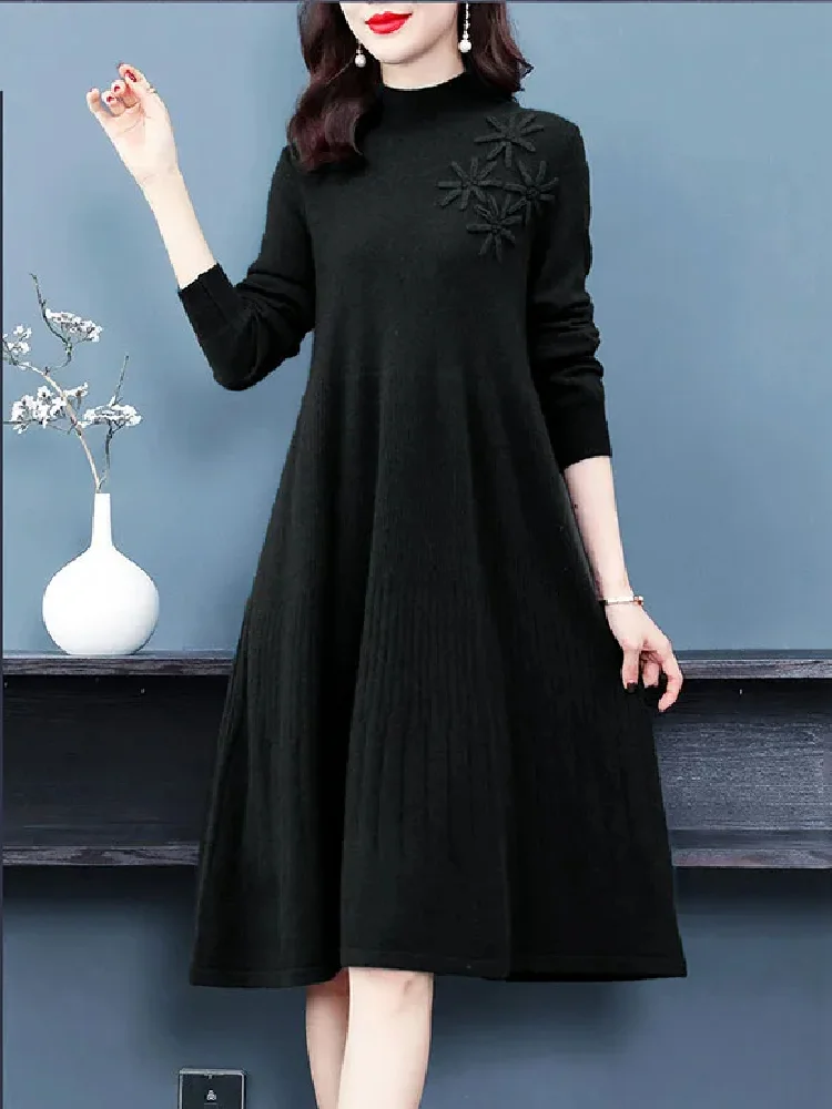 Découvrez notre robe d’hiver mi-longue, un vrai bijou pour les journées les plus fraîches ! Ornée de petites fleurs au niveau de la poitrine et disponible en plusieurs couleurs, elle allie chaleur et style avec une élégance sans effort !