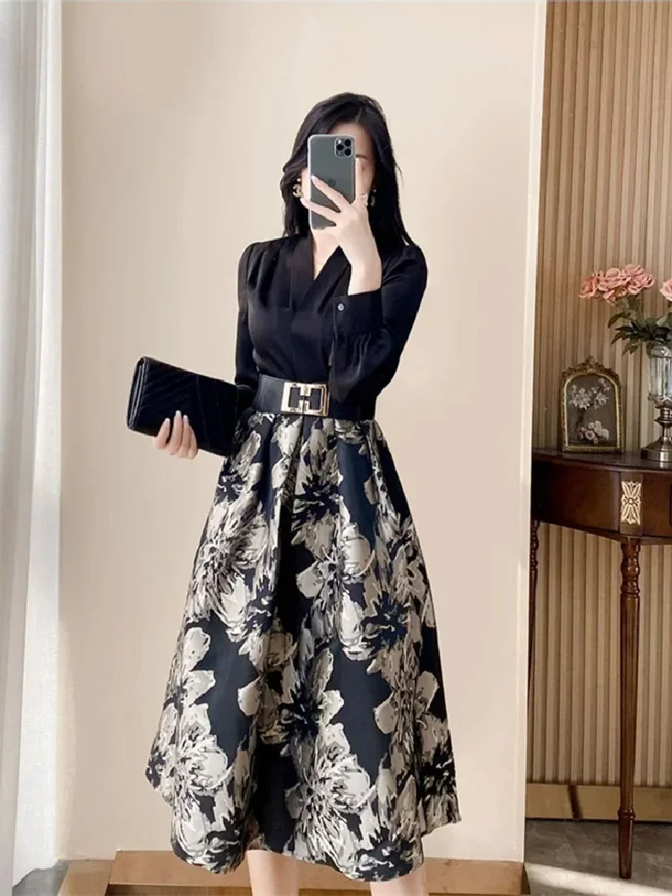 Transformez votre garde-robe avec notre robe d’hiver pin-up noire ! Cette sublime pièce, avec son haut ajusté et sa jupe fleurie et évasée, ajoute un charme chic et audacieux à votre style.