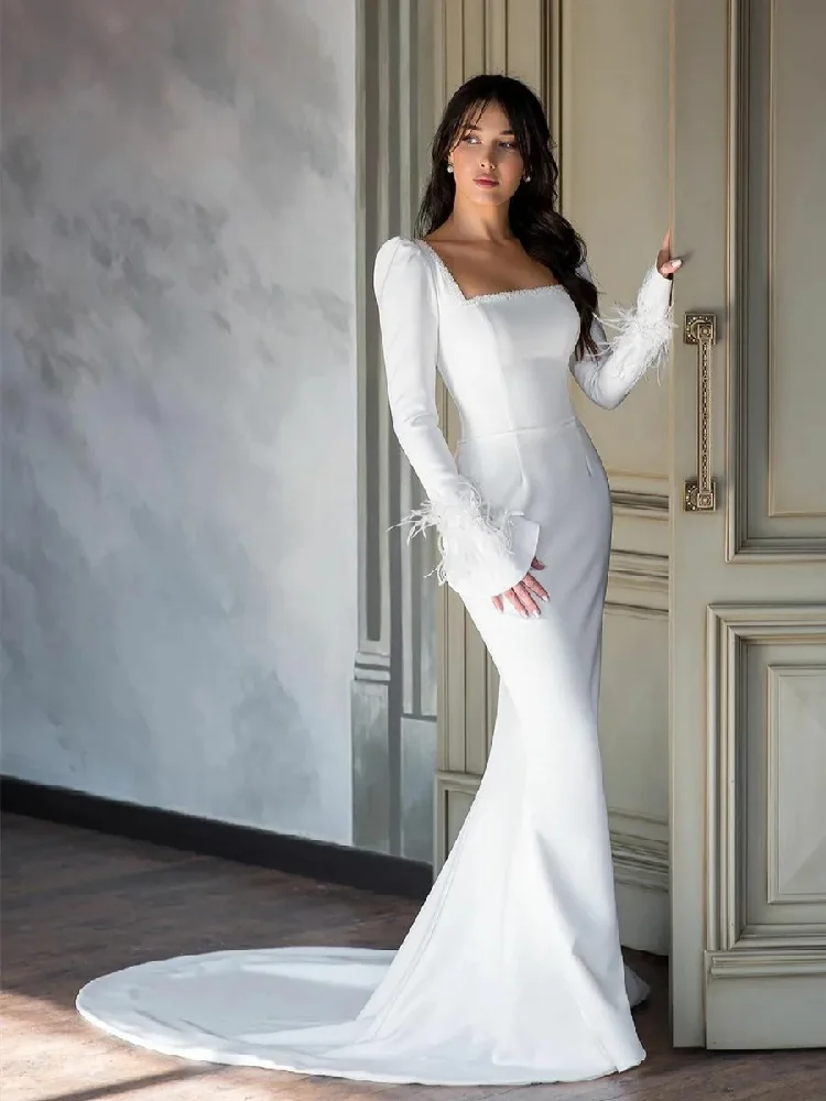 Prête à briller lors de votre mariage en mairie ? Optez pour notre robe d’hiver pour mariage civil, conçue pour vous sublimer ! Élégante, chic et sophistiquée, elle promet de mettre en valeur votre silhouette de la manière la plus élégante !