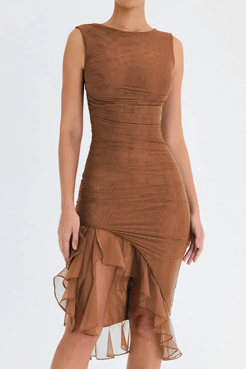 Laissez-vous séduire par notre robe dos nu moulante à volants, un véritable atout de séduction qui allie élégance, qualité et polyvalence. Son design moderne avec un dos nu audacieux et ses volants gracieux en font la pièce idéale pour vos soirées les plus chics.