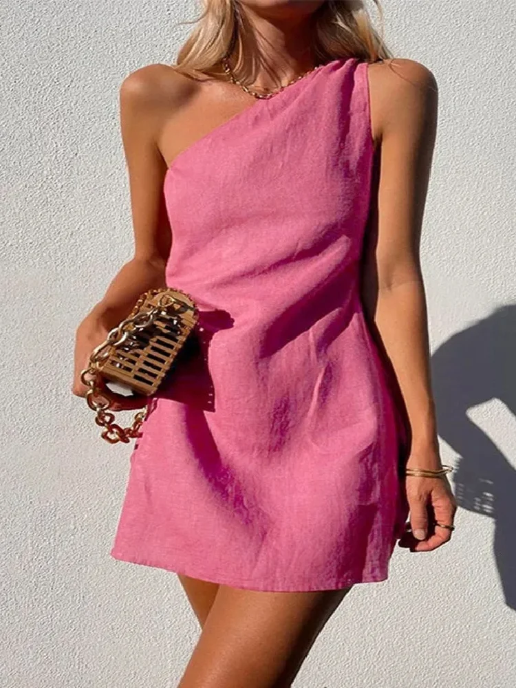 Restez élégante en toute simplicité, grâce à notre robe en lin courte asymétrique. Cette pièce unique est belle et chic, combinant confort et style avec une touche de modernité !