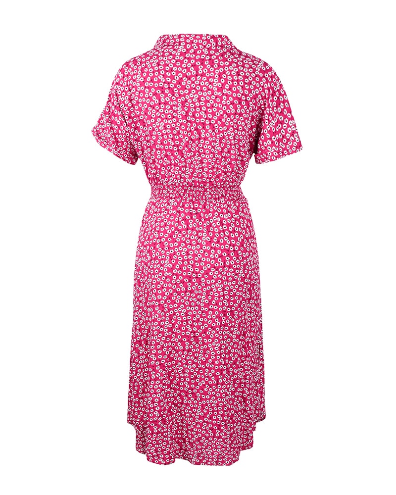 Robe Fluide Mi-longue Rouge Boutonnée à Motif Fleuri
