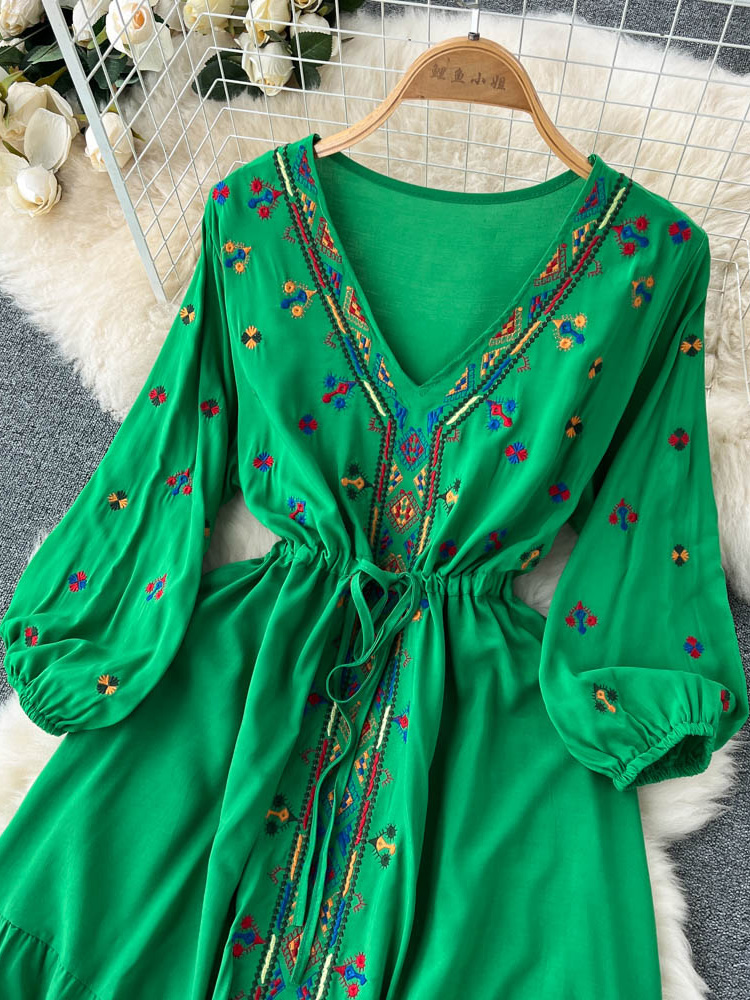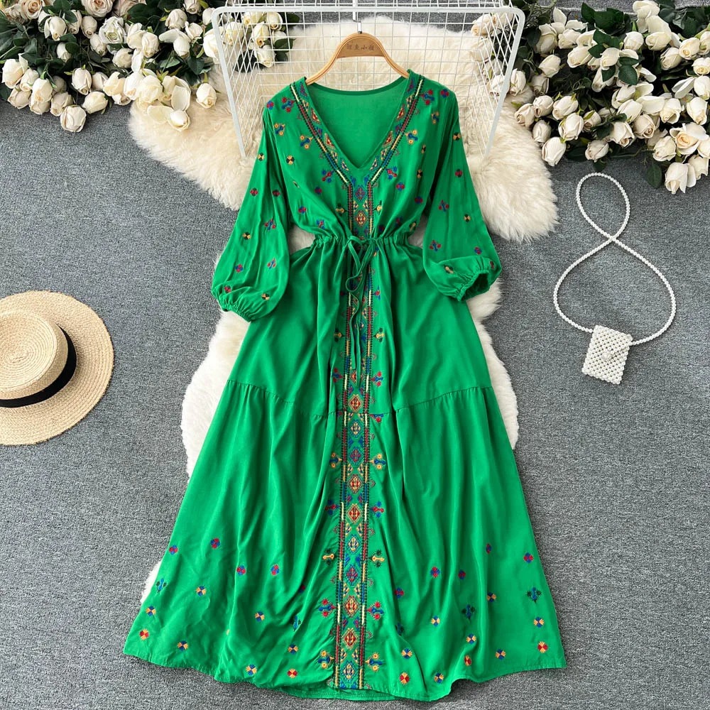 Envie d’éblouir vos proches lors de votre prochaine sortie ? Laissez-vous séduire par l’allure sophistiquée de notre robe kabyle verte à manches longues.
