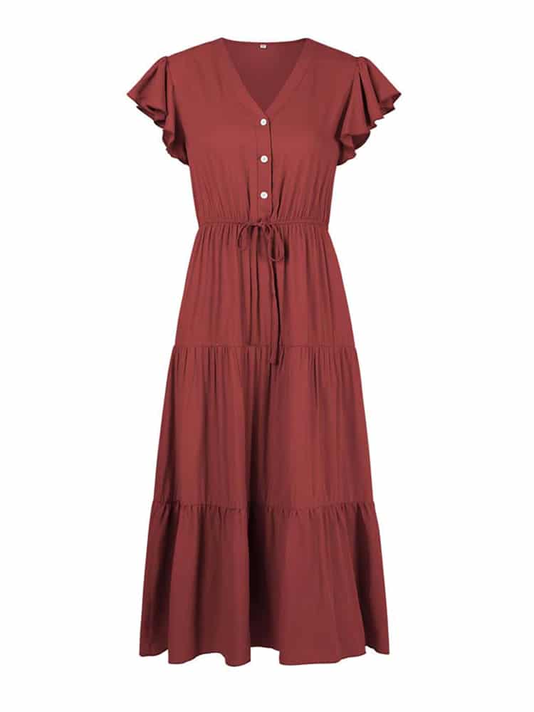 Faites une déclaration cet été dans l’élégante robe longue d’été rouge à volants pour femme ! Cette robe présente un tissu rouge et une silhouette élégante. Avec sa jupe plissée élégante et son devant à volants accrocheur, cette robe vous fera rayonner de charme féminin partout où vous irez. Confectionnée à partir des meilleurs matériaux avec une attention particulière aux détails, cette pièce de créateur fera à coup sûr tourner les têtes. Sa coupe confortable et son design flatteur la rendent parfaite pour toute occasion – que vous profitiez d’une journée de sortie ou que vous passiez une soirée entre amis, cette robe sera votre compagnon idéal. Soyez belle et sentez-vous confiante dans la robe longue d’été rouge à volants pour femmes.