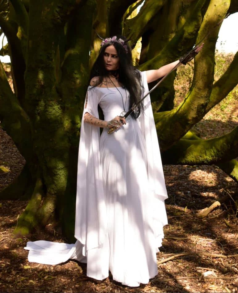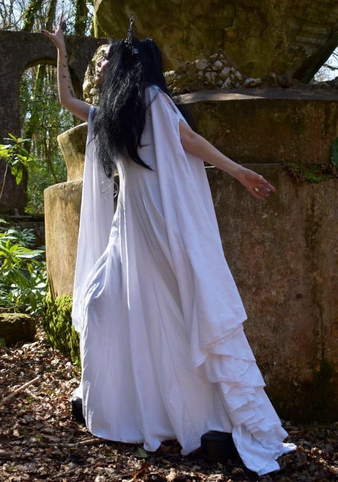 Si vous cherchez une tenue qui allie histoire et style, alors notre robe médiévale blanche est faite pour vous immerger dans un monde de fantaisie ! Son tissu blanc neige épouse délicatement votre taille, tandis que le design fluide vous permet de vous mouvoir avec grâce !