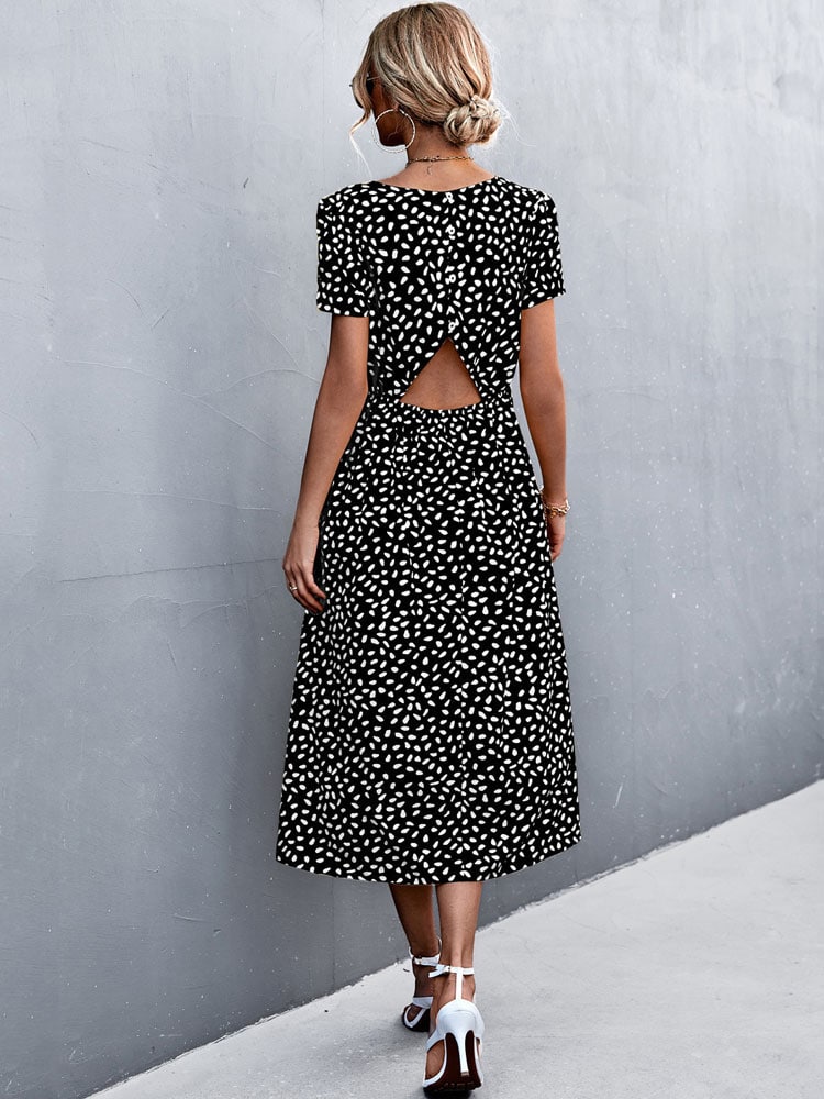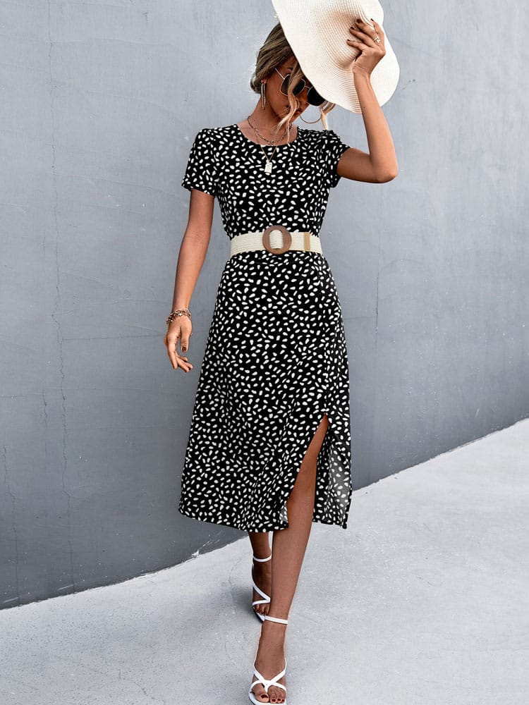 Cette robe élégante est un choix rafraîchissant pour toute garde-robe sophistiquée. Confectionnée dans un tissu léger de qualité, elle présente une coupe confortable qui se drape gracieusement sur le corps. Avec son imprimé accrocheur et sa belle teinte noire, elle apportera classe et style à toutes les tenues que vous lui associerez. La taille est légèrement cintrée pour accentuer la silhouette, tandis que des plis courent le long de l’encolure en V pour plus de détails. Avec sa coupe polyvalente et son esthétique intemporelle, cette robe peut être habillée ou non pour tout événement spécial. Un vêtement classique qui non seulement se fera remarquer partout où vous irez, mais qui restera également élégant pendant de nombreuses saisons à venir.