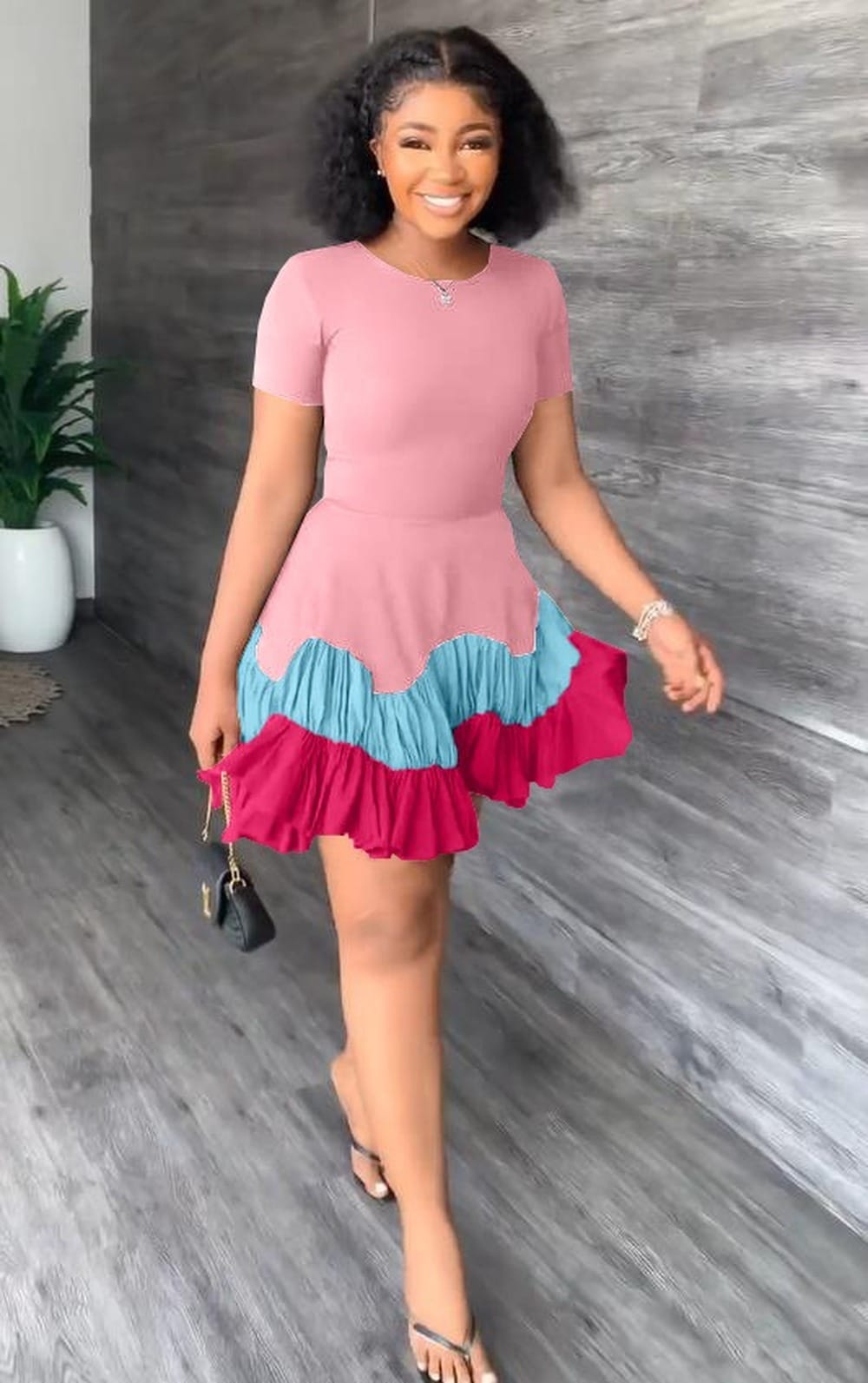 Soyez le premier à laisser votre avis sur “Robe Patineuse Rose à Volants Bicolores”
