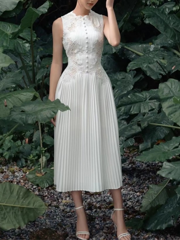 Robe Plissée Chic Blanche