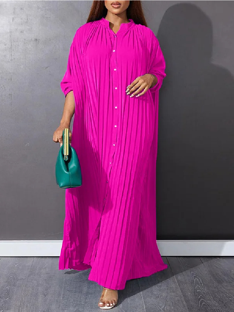 Vous cherchez une robe qui vous fasse sentir unique et spéciale ? Vous allez adorer notre robe plissée longue boutonnée ! Avec ses couleurs vibrantes comme le rose, le bleu et le jaune, elle illumine votre journée et votre garde-robe !