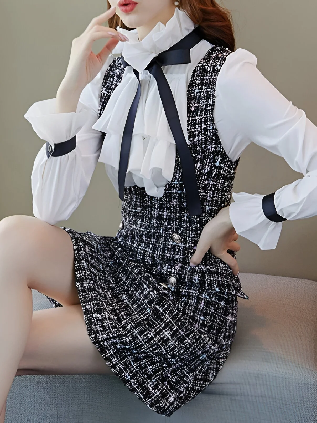 Que ce soit pour le bureau ou une sortie chic entre amis, cette robe sera votre alliée pour capturer les regards. Livrée avec son petit chemisier blanc ultra-élégant, cette pièce vous promet non seulement une présence remarquée, mais également un confort inébranlable !