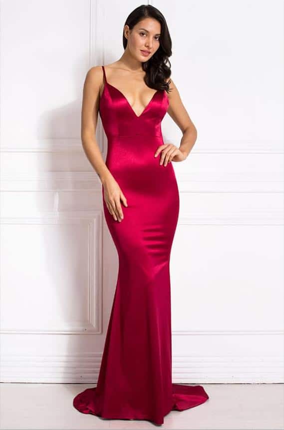 Robe Sirène de Soirée Rouge Dos Nu en Satin