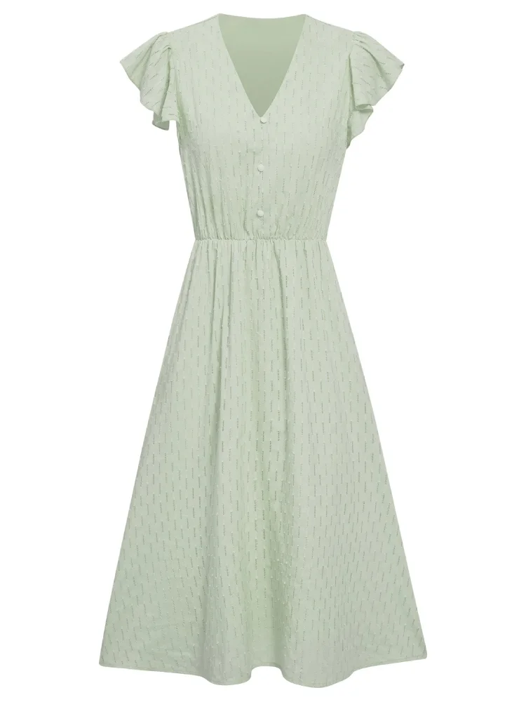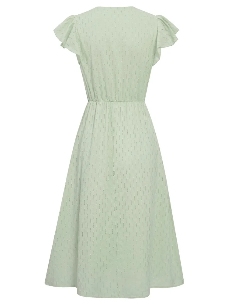 Robe Vert Sauge Mi-Longue pour l’Été